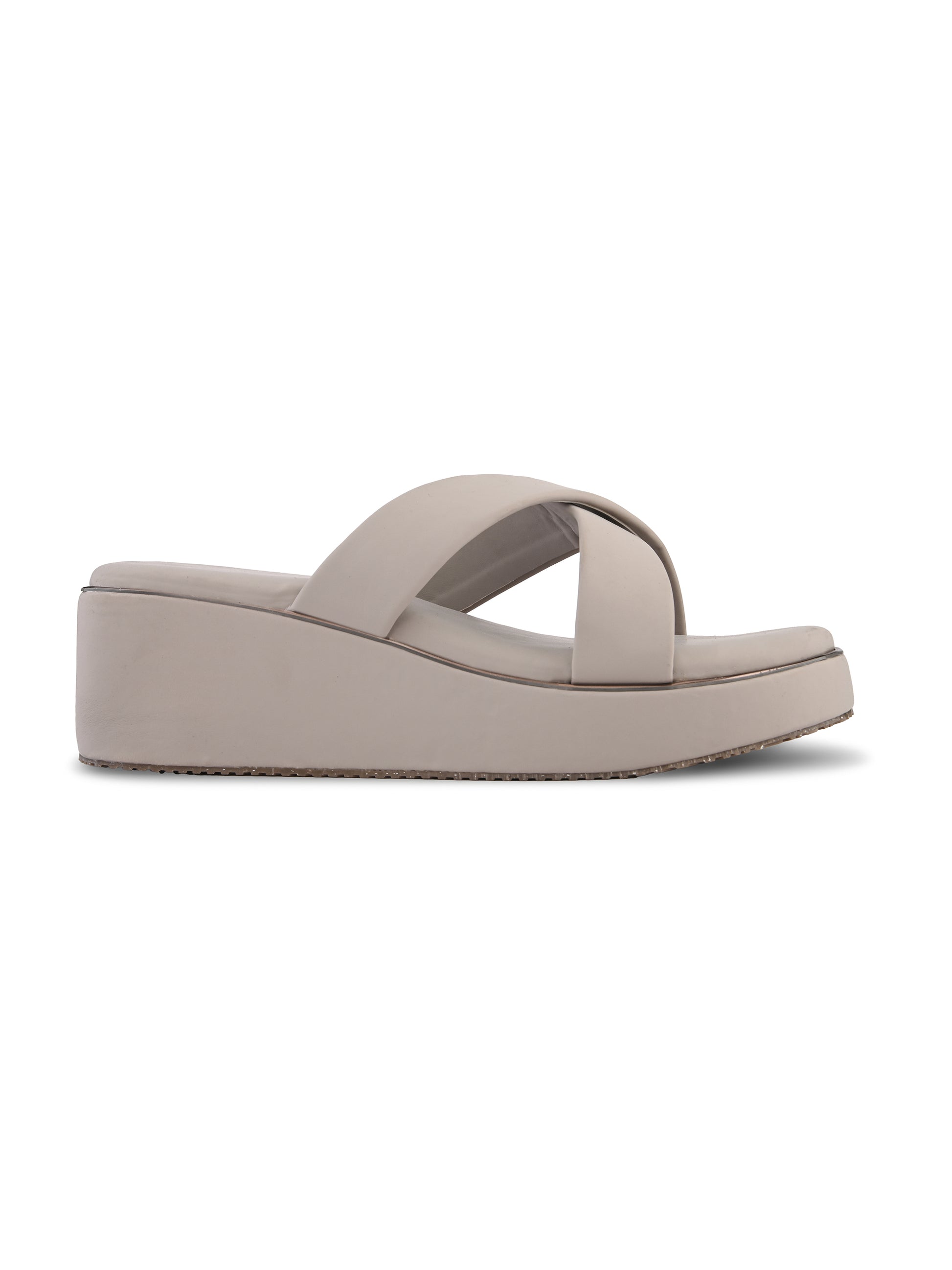 Whether you're heading to a brunch, a beachside dinner, or just running errands in style, the cushioned platform sole provides the lift you love with the stability you need. The sleek cross-strap design hugs your foot securely, while the subtle metallic accent trim adds a touch of luxury to every step.