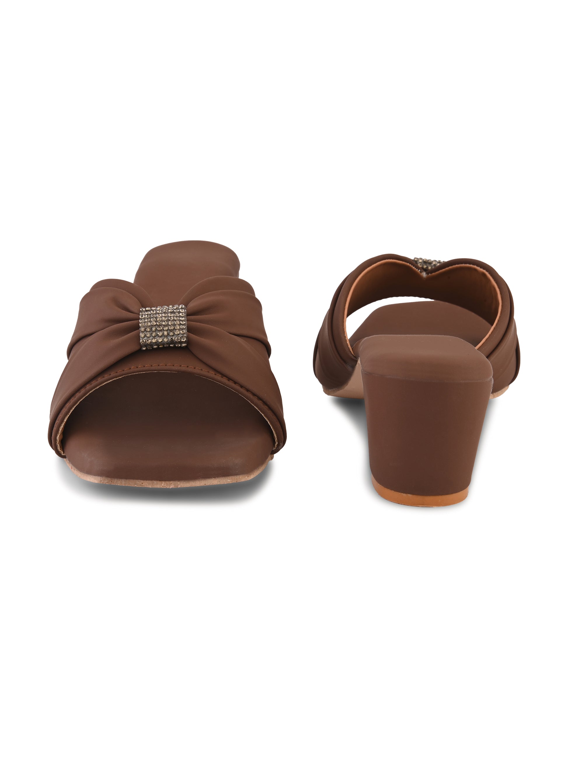 Ravis Women's Ruched Block Heel Sandals with Rhinestone Detail